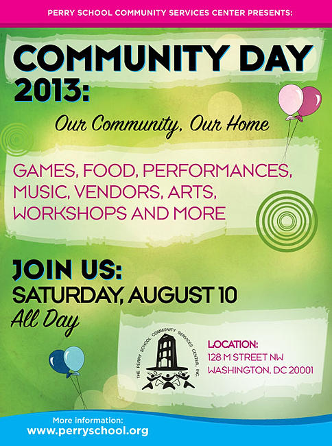 Community Day is an annual event at the Perry School Community Services Center in collaboration with government agencies, community groups, and local churches to celebrate local community and build neighborhood relations. The day will feature educational workshops, health seminars, and access to support services to help families, youth and adults. Additionally, there will be children’s activities, backpack giveaways, competitions, food and other fun events.
